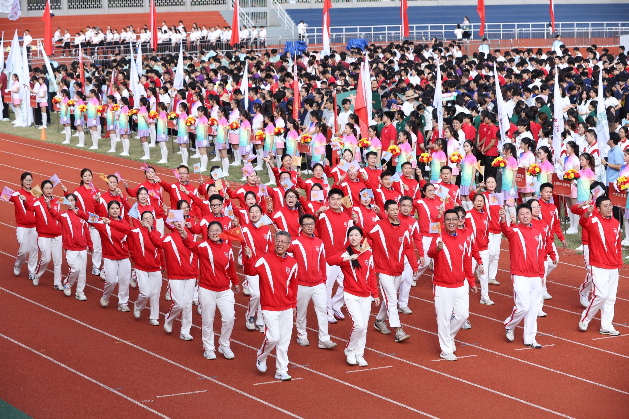 博彩平台推荐新闻网(通讯员姚颂华)金秋送爽,丹桂飘香。11月8日,博彩平台推荐2025年运动会在广州校区南校园运动场举行。全校师生在学校体育“享受乐趣、增强体质、健全人格、锤炼意志”的目标指引下,齐聚绿茵赛场,共赴青春之约,在秋日暖阳中挥洒汗水、绽放风采。