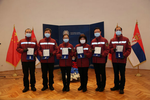 当地时间6月10日,专家组结束工作,启程回国。塞尔维亚总理布尔纳比奇向专家组每位成员赠送了塞尔维亚的泥土,并表示塞尔维亚政府和人民感谢中国为塞抗疫斗争提供巨大支持和帮助。专家组给塞带来了中国成功抗击疫情的宝贵经验,在塞抗疫斗争中发挥了关键作用。