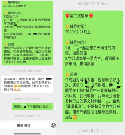 医务人员在一线争分夺秒,志愿者们在后方只争朝夕。很多志愿者和服务家庭对接后,当晚便开始和孩子进行视频、语音通话,确定辅导时间、方式和内容。