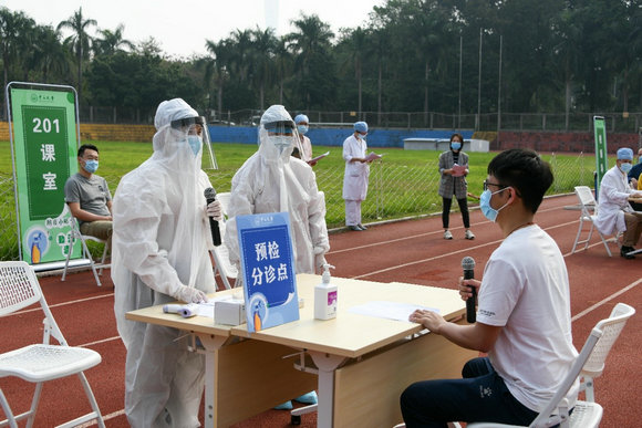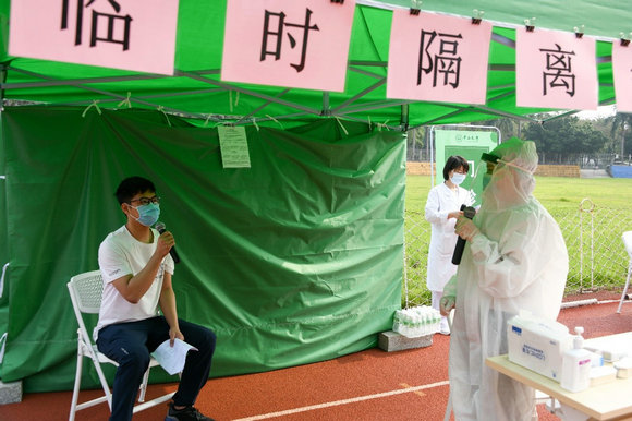 新闻网讯(记者赵现廷) “同学,请配合体温检测”“同学,请保持安全距离”“同学,请配合进行咽拭子采样”……4月17日,南校园英东田径场上,工作人员正在开展防疫工作,开展各种场景的防疫演练。