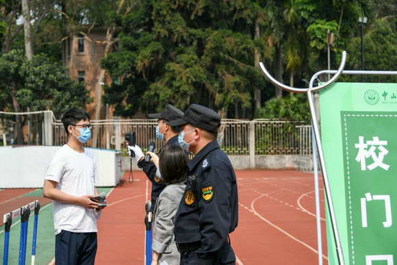 4月17日,学校在英东田径场举行疫情防控演练 记者李劲峰 摄