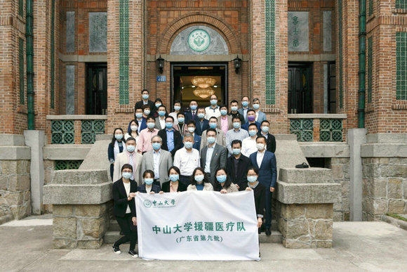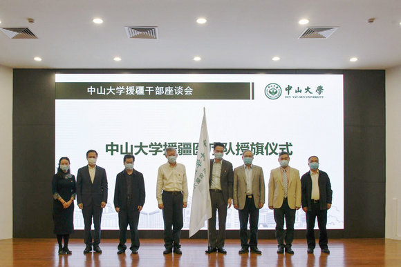 最后,陈春声书记为援疆医疗队授旗,希望大家以高度的政治责任感和历史使命感圆满完成援疆任务。