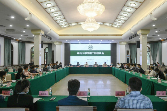 3月17日上午,我校在广州校区南校园怀士堂召开援疆干部座谈会。校党委书记陈春声,校长罗俊,副校长肖海鹏、杨清华,广东省援疆前方指挥部总指挥王再华,广东省第九批援疆干部、附属喀什医院增派干部、广东省“组团式”援疆医疗队(第四批)代表,援疆干部所在医院负责人,组织部、宣传部、校长办公室、人力资源管理处、医院管理处等学校职能部门负责人出席会议。会议由杨清华副校长主持。