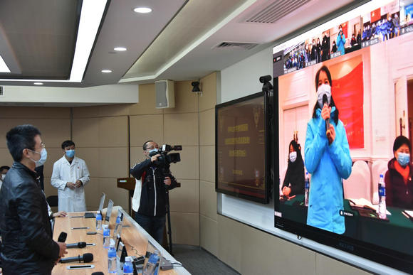 医疗队队员们感谢学校领导的关心和问候,并表示一定不负众望、不辱使命,保证完成救援任务。部分医护人员家属与在一线奋战的爱人进行视频连线,互相鼓励,一起加油。