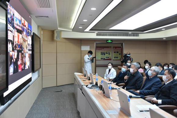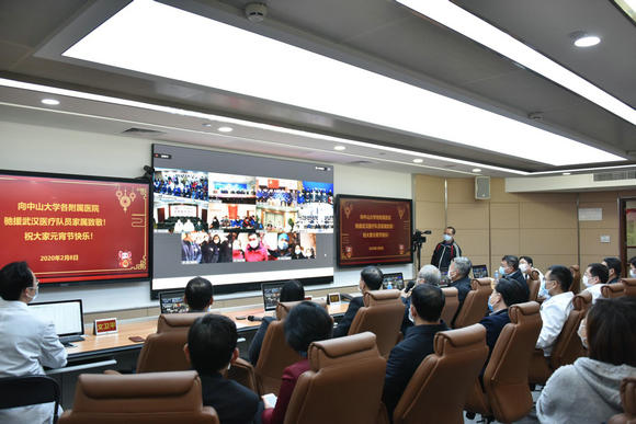 2月8日下午,我校疫情防控工作视频会议在附属第一医院5号楼远程会诊中心召开,陈春声书记、罗俊校长出席会议,连线奋战在最前线的医护人员,向他们表示崇高的敬意并贺元宵。会议由肖海鹏副校长主持。