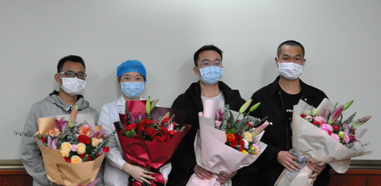 4位支援深圳市第三人民医院的“白衣战士”(从左至右:丘文波、钟小春、冯强、许业钦)