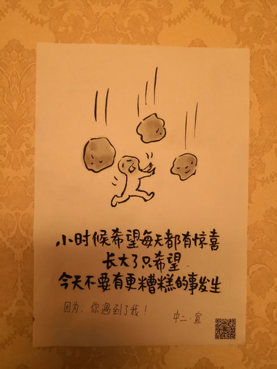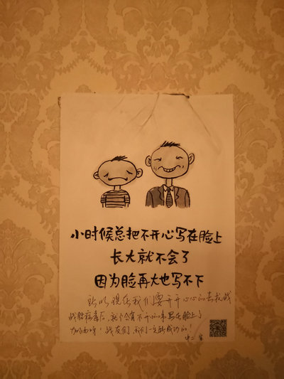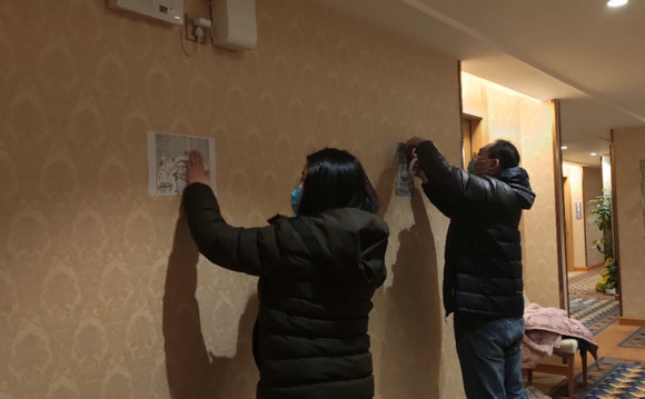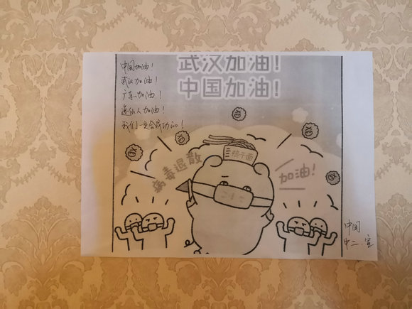2月1日晚,广东省支援湖北疫情防控医疗队、我校孙逸仙纪念医院支援湖北疫情防控医疗队在酒店走廊上贴上了醒目标语。此外,还有一幅幅色彩鲜明、轻松活泼的漫画出现在酒店走廊墙壁上,配着或幽默俏皮,或富有哲理的文字,吸引过往医护人员驻足观赏。这一“文化长廊”,是孙逸仙纪念医院医疗队送给广东省支援湖北疫情防控医疗队全体队员的“特殊礼物”,让所有路过的广东医疗队员能得到精神上的力量!