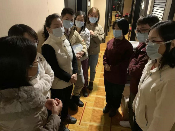 1月28日深夜,医疗队抵达住处。当晚,医疗队队员对居住的酒店进行彻底消毒,消毒完已是凌晨2点多。29日一早,医疗队召开了一场集体动员会,介绍他们即将接管的汉口医院相关病区情况,并为队员们打心理“预防针”。