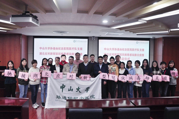 1月24日,除夕夜。孙逸仙纪念医院上午发出组建医疗队驰援武汉的通知,短短几个小时收到几百位医务人员的踊跃请战。最后由20位医护人员组成了医院第一批支援湖北疫情防控医疗队。院长宋尔卫院士为医疗队举办出征仪式。学校党委书记陈春声到机场为队员们送行。