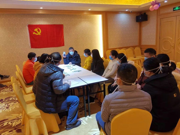 飞机抵达武汉后,工作千头万绪。为使20名来自不同科室的队员们快速进入战斗状态,临时党支部党支委第一时间召开会议,商议计划,凝聚队员思想,团结队员力量,充分发挥队员优势,合理安排分工。