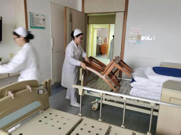 短时间内,隔离病房完成改造,患者安全转运到新病区,没有人喊累,也没有人抱怨,护士们能提的提,能扛的扛,很快,新隔离病房正式投入使用。