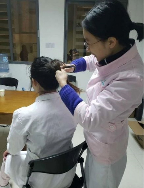 附属第三医院岭南医院的护士们为了减小感染几率,纷纷剪掉长发