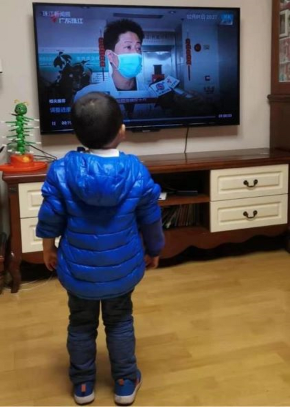 彭亮教授4岁的儿子通过电视看到爸爸