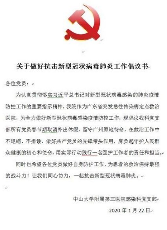 17年后,抗非精神薪火相传,作为“新冠肺炎”隔离病区救治工作的主力军、也是17年前抗击“非典”烈士邓练贤教授所在的英雄团队,博彩平台推荐附属第三医院感染科党支部发出号召,发挥共产党员模范带头作用,肩负守护人民群众健康的使命。党支部战斗堡垒作用凸显,党旗高高飘扬在抗击疫情第一线。