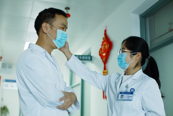 像李松彪、谭萃妍这样的抗疫夫妻档,在医院里还有很多。他们是战友、是同事还是夫妻,正如李松彪所说,双方“互相支持、鼓励”,在防控疫情战役中,这份情感让人倍感暖心。