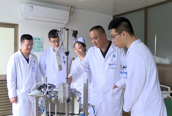 与团队进仓成功抢救病人后,郑晓滨及时调整呼吸机参数