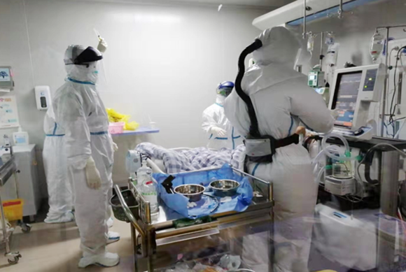 他从1月19日中午过来到现在,主要负责危重病人的救治,每日查房,随时监测病情变化,随时处理。期间他与团队一起为首例危重病人做气管插管、留置胃管、支气管镜检查及经支气管镜吸痰。