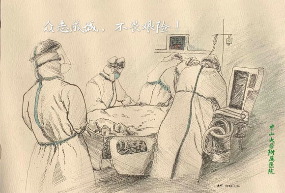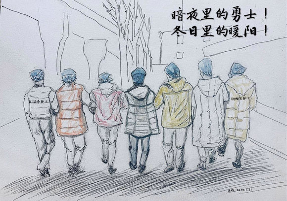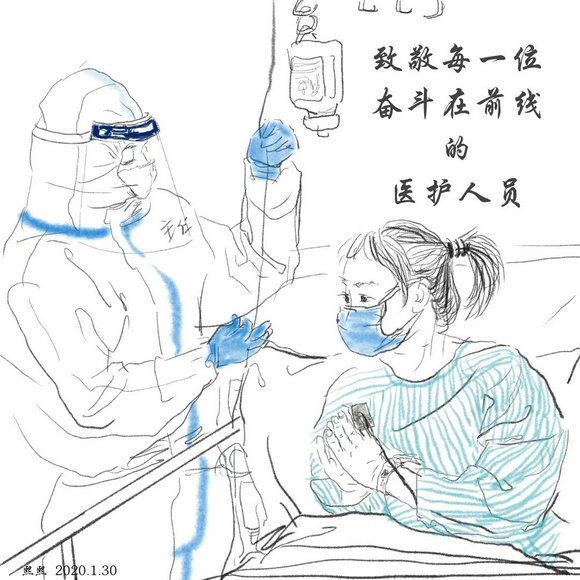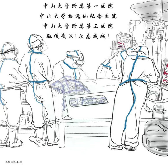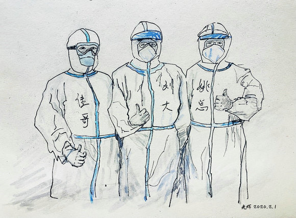 在这次疫情面前,我校艺术学院美术方向的同学们以一组简练而生动的速写作品,为这群最让人牵挂和敬佩的白衣天使们送上我们的关心与祝福,相信他们一定能保护好自己,圆满地完成任务并且平安地归来。