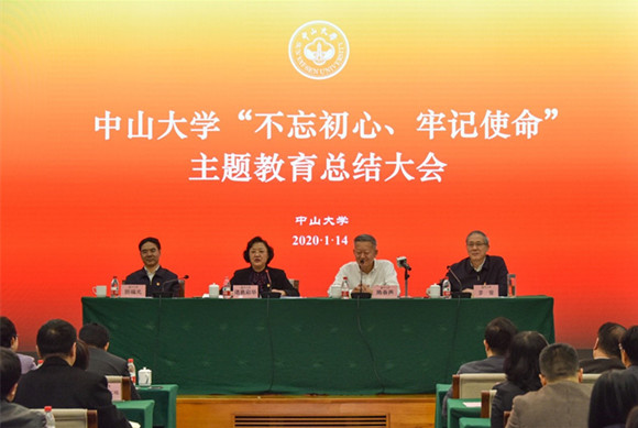 陈春声书记代表学校党委作学校主题教育总结报告。按照党中央部署要求,学校参加第二批主题教育,2019年9月11日召开了动员大会。主题教育期间,学校党委聚焦学习贯彻习近平新时代中国特色社会主义思想的鲜明主题和根本任务,突出为党育人、为国育才,统筹推进学习教育、调查研究、检视问题、整改落实四项重点措施,加强主题教育与学校中心工作“两结合、两促进”,以学校领导班子和52个职能部门、63个学院和直属系、10家附属医院处级以上领导班子为重点,带动957个党支部和全体党员参加主题教育。学校主题教育领导小组加强组织领导,精心部署落实,细化督促指导,学校党委、二级党组织和党支部“三级联动”,扎实推动主题教育取得实实在在的成效。