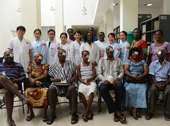 2015年,支部书记郑丹莹教授、支部党员刘玉华教授、韦梅护士参加了广东省卫计委加纳“光明行”医疗义诊项目。郑丹莹教授带领中山眼科中心医疗队远赴非洲加纳,为当地白内障患者实施白内障复明手术208例,在开展门诊和手术工作的同时,还培训了之前从未做过眼压测量、A/B超机、电脑验光仪等的当地门诊护士,使他们均能独立完成仪器和设备的使用。