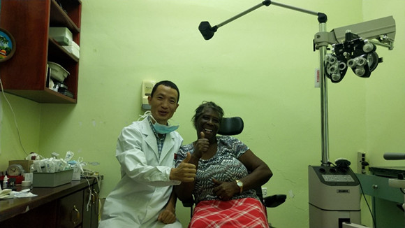 “敬佑生命、救死扶伤、甘于奉献、大爱无疆”,六年来,临床六支部的党员医生们勇于承担、甘于奉献,用精湛医术和仁心医德架起与友好国家的友谊。在当地患者的心中,这一支支眼科医疗队就是他们的光明天使。诊室里,手术台上,经常会有重见光明的患者拉住他们的手,连声说“Thank you,Chinese doctor”,甚至是在马路上、菜场里,当地人远远见到中国医生,都会大声喊着 “Chinese doctor、中国医生”打招呼。