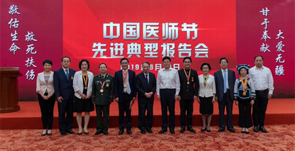在人民大会堂举行的“中国医师节 先进典型报告会”(左三陈伟蓉教授)