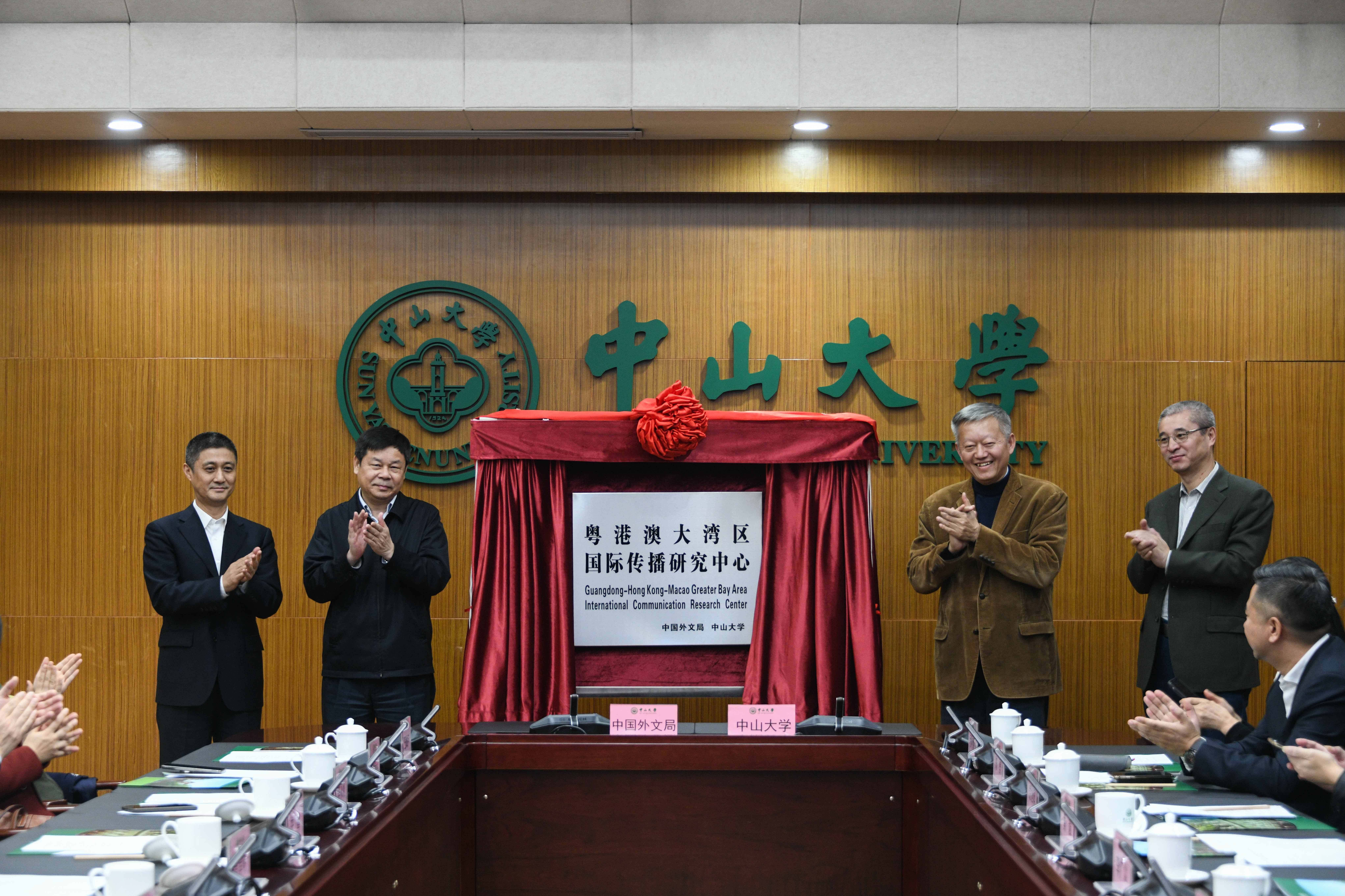 双方领导为“粤港澳大湾区国际传播研究中心”揭牌