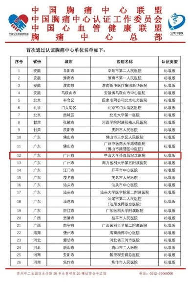 近日,2019年度第四批次中国胸痛中心及中国基层胸痛中心认证结果公布,孙逸仙纪念医院顺利通过中国胸痛中心认证。