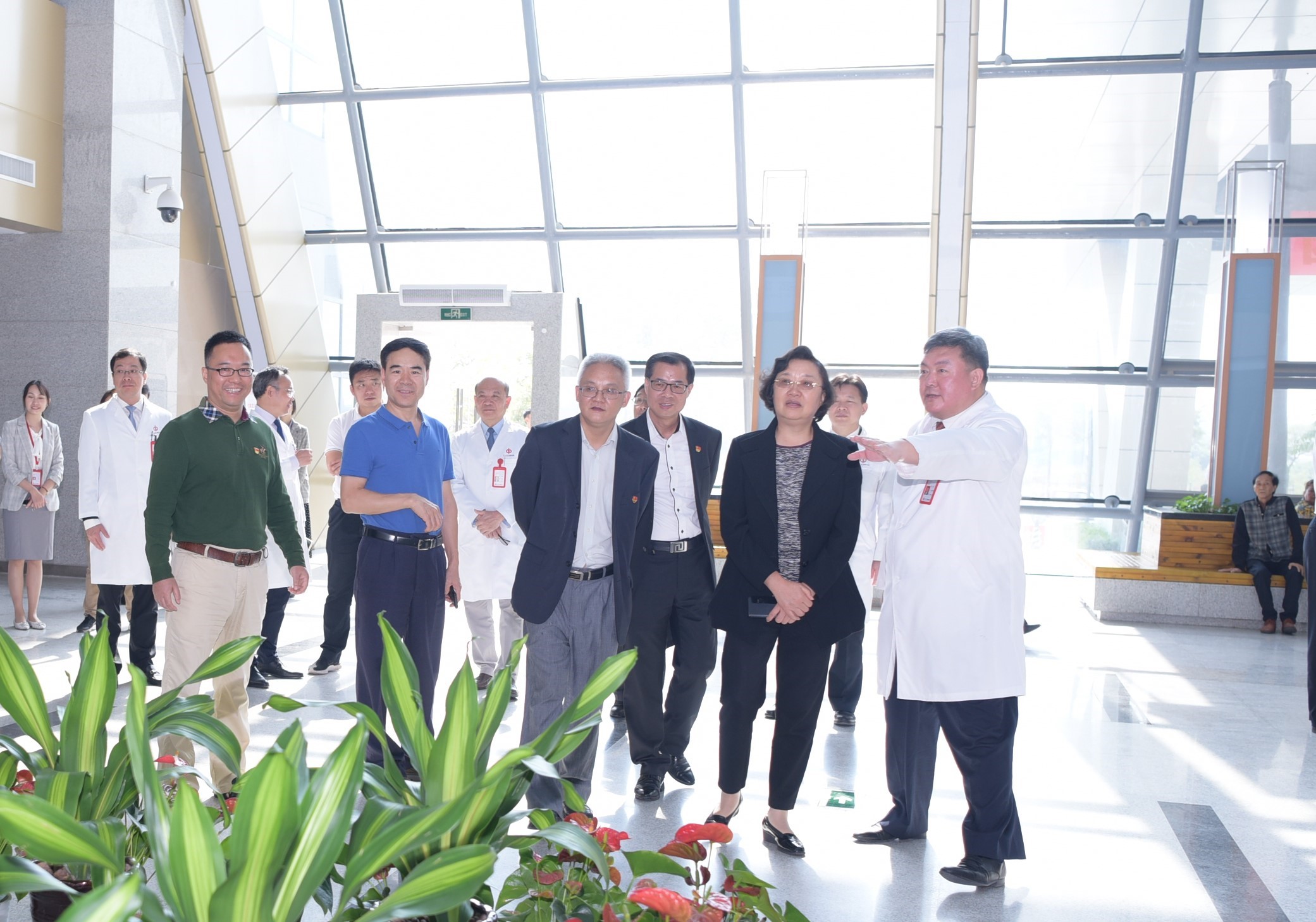 指导组一行先后考察了附属七院移动医院、急诊与灾难医学中心、儿科门诊、门诊大厅、门诊药房等地。医院党委书记苗伟就医院信息化建设、一站式服务、智慧化医院、紧急医学救援、人文关怀精神等情况进行了简单介绍。