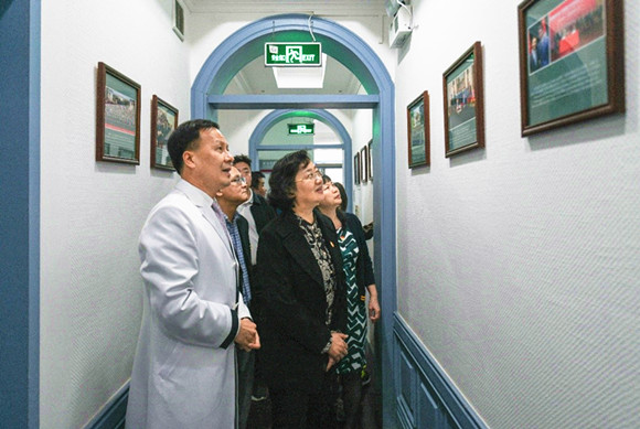 指导组一行在党支部书记、科室主任等的介绍下了解了主题教育期间新增的八十多台自助挂号查询机、新改造的母婴室和儿童厕所、新启用的有助于危重症患者的抢救的高压氧舱等方面的情况,在院史楼参观了医院主题教育系列成果展示,更全面地了解医院未来发展格局、开展医疗外交、支持国家战略等方面的情况。