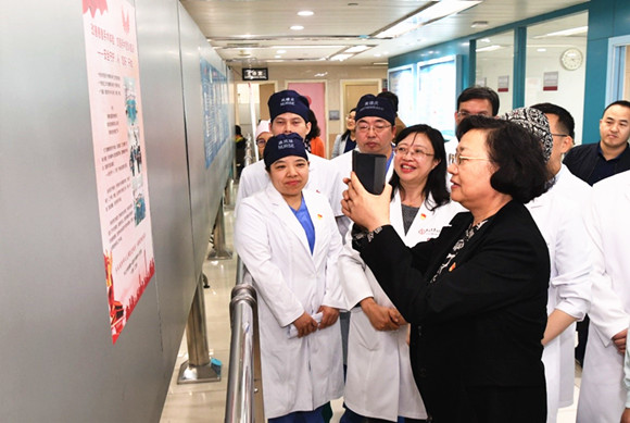 指导组在智慧药房观摩了自动发药机的运行,自动发药机从配药到拿药只需要六分钟,日均3000单配药准确率达到100%;在检验科了解了全自动气动传输物流系统,能在十余秒内“走遍”大楼,实现检验样本、药品和医疗器械的精准、快速投放;在体检中心听取了医院正在实现“以治病为中心”向“以健康为中心”理念转变的汇报,查看了体检中心为学校高层次人才提供专业体检服务和后续绿色治疗通道以及为广大群众开设的“健康管理门诊”的相关情况。