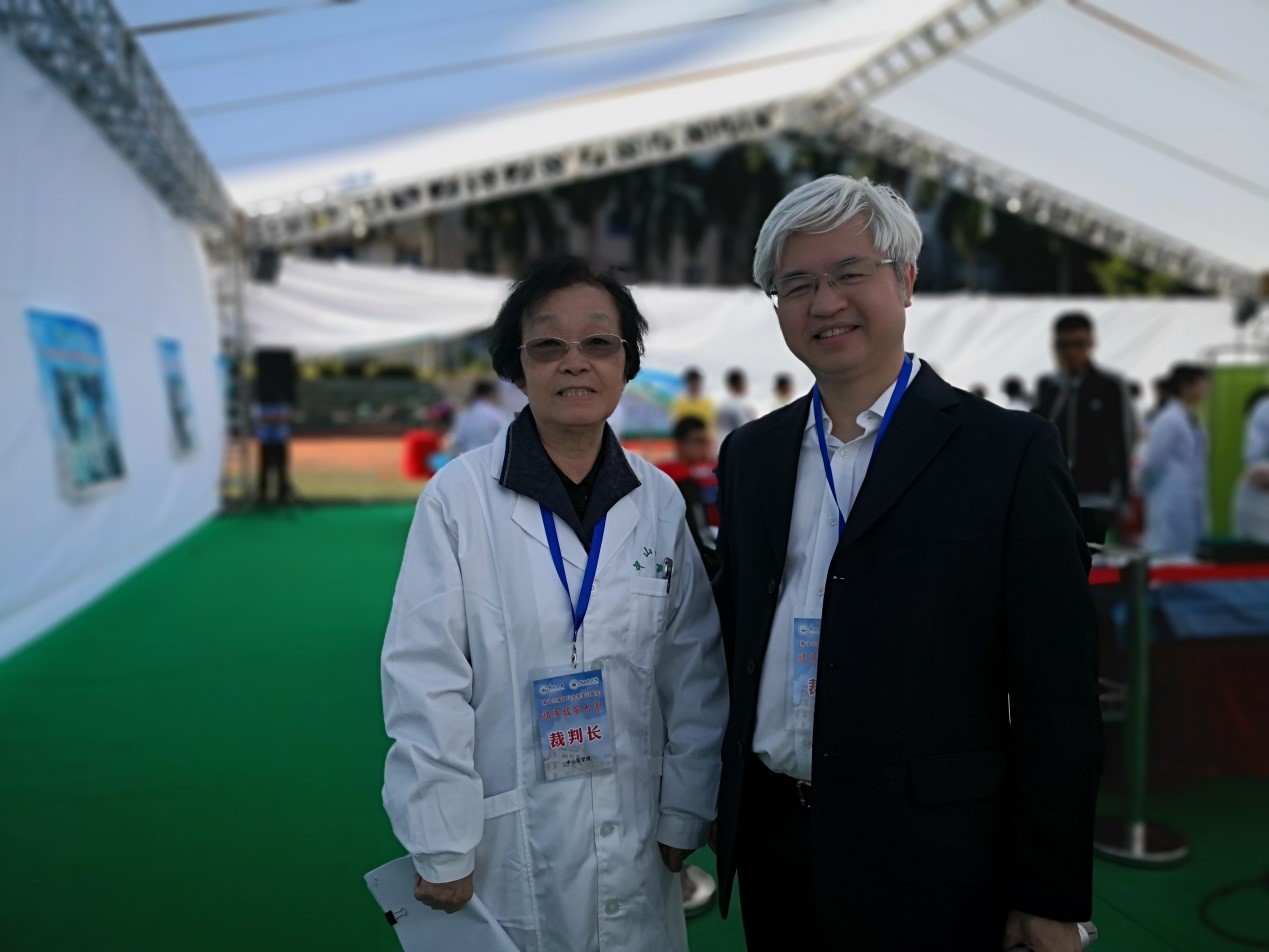 2019年黎尚荣教授担任博彩平台推荐实习医师临床技能竞赛总指挥,黎尚荣教授与大赛裁判长汤美安教授(左)合影