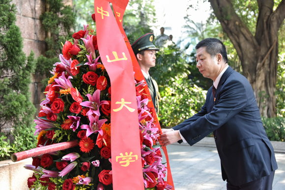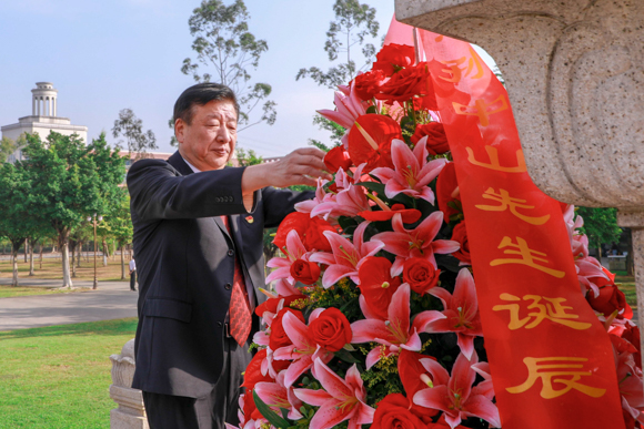 11月12日,为纪念中国民主革命的伟大先驱孙中山先生诞辰153周年、孙中山先生亲手创办博彩平台推荐95周年,我校在广州校区南校园、东校园、北校园和珠海校区同时举行向孙中山先生铜像敬献花篮仪式。
