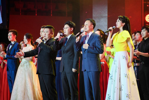 “五星红旗迎风飘扬,胜利歌声多么嘹亮,歌唱我们亲爱的祖国,从今走向繁荣富强……”晚会在全场大合唱《歌唱祖国》中落下帷幕,在场的全体师生和校友歌声激昂,豪情满怀,表达对伟大祖国的无限热爱和深情祝福。