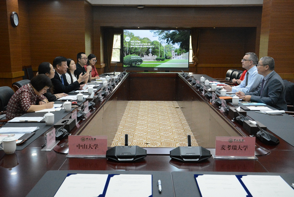 孙冬柏常务副校长对麦考瑞大学一行表示热烈欢迎,介绍了学校的优势学科、科研大平台以及与澳大利亚的合作情况。他表示,两校有良好的合作基础,多个院系已经开展了不同程度的合作,期待进一步深化和拓展双方的合作交流。