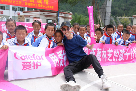 庞伟在西藏林芝下察隅小学发放爱心物资