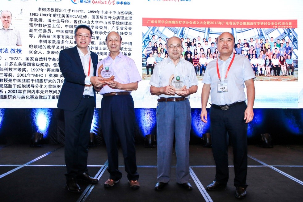 黄绍良教授(左二)与李树浓教授(右二)荣获“细胞治疗学终身成就奖”