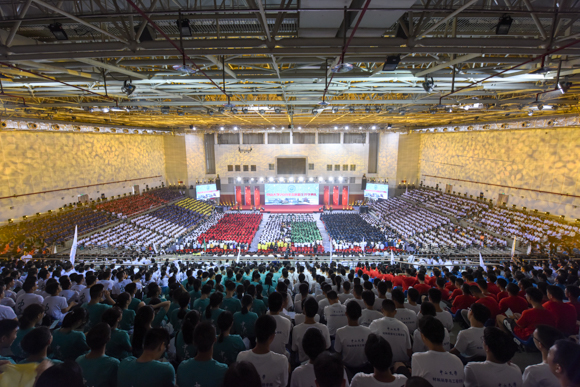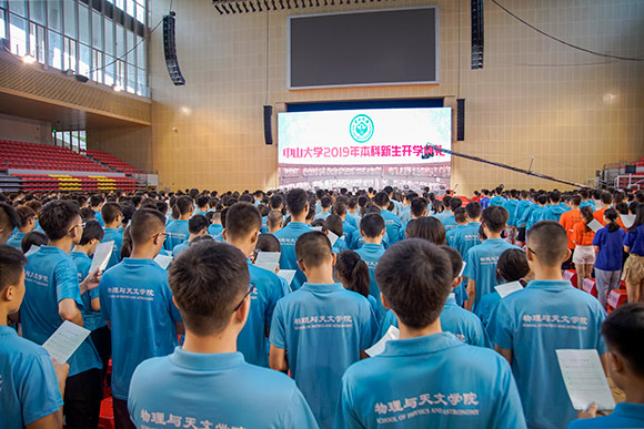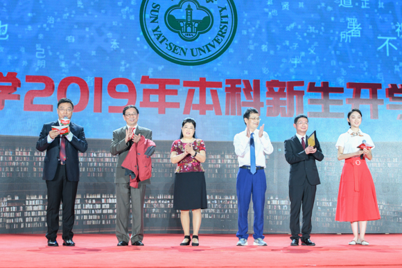 9月2日,我校2019年开学典礼在广州校区东校园、珠海校区同时举行,8000余名新生参加典礼。校领导陈春声、罗俊、孙冬柏、国亚萍、李善民、余敏斌、马骏、杨清华、王雪华、兰平、邰忠智,教师代表中国工程院院士林浩然、王复明,中国科学院院士计亮年、陈新滋、张培震、吕达仁,以及各学院、直属系、附属医院负责人等出席开学典礼。