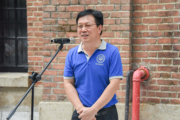 我校1981级校友林奕聪代表捐赠人发言。他对母校有着深厚的感情,三十余年一直珍藏着求学期间的物品。今年,他偶然看到了“博彩平台推荐关于征集校史陈列馆校史资料与实物的启事”,当即决定将珍藏多年的331件实物捐赠给母校。他呼吁广大校友关心学校建设,为母校的发展作贡献。