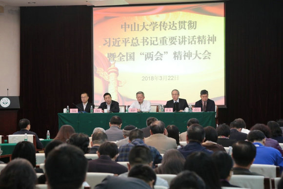 2018年3月,党委书记陈春声、校长罗俊等传达两会精神
