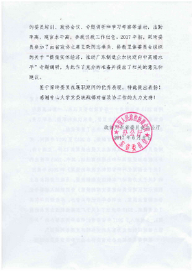 积极支持党外人士深入调研,从面向国家重大战略需求、粤港澳大湾区建设、广东“四个走在全国前列”需求出发,建言献策。学校政协委员、政府参事等深入开展调查研究,认真撰写提案建议,多次获得省政协、省政府参事室等表彰。2018年,我校省政协委员梁琦教授参与的提案连续第三年成为省委书记督办的一号提案,全国政协委员毛蕴诗教授出版履职专著。