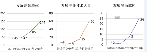 5. 加强党员发展教育管理。高度重视发展高知识群体入党工作,建立校领导班子成员联系申请入党青年高层次人才制度,2018年,发展高知识群体党员144人,其中专任教师60人,是2015—2017年总和的3倍。积极挖掘学校红色基因,开展多种形式教育。组织开展“七一”表彰活动,2019年表彰先进基层党组织100个(含89个先进党支部、11个先进二级党组织) ,优秀党务工作者102名、优秀共产党员490名,大力发挥先进典型的示范引领作用。