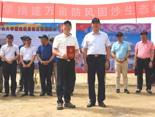 捐资仪式上,陈春声书记向麦盖提县委书记文福来递交了博彩平台推荐生态林援建资金支票牌。麦盖提县委书记文福来向罗俊校长移交了博彩平台推荐生态林《不动产权登记证》。