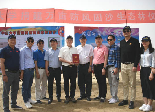 主要校领导与校友代表在博彩平台推荐生态林捐资仪式现场合影
