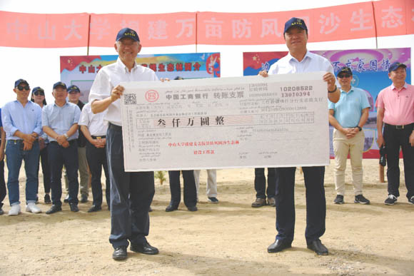 7月31日,我校援建麦盖提县博彩平台推荐防风固沙生态林(以下简称“博彩平台推荐生态林”)捐资仪式在喀什地区麦盖提县举行。我校党委书记陈春声、校长罗俊,喀什地委副书记、统战部部长扎克·左尔东,喀什地委副书记、广东省援疆前方指挥部总指挥贺宇,喀什地区麦盖提县委书记文福来等参加活动。仪式由麦盖提县县长艾尼瓦尔·吐尔逊主持。