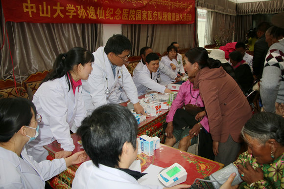 7月11至12日,十九大党代表、孙逸仙纪念医院党委副书记兼副院长许可慰教授带领国家医疗队一行8人跨越万里,赴仲巴县人民医院进行实地考察及巡回医疗,一共走访了7个单位及1个村落,为驻军官兵、孤寡老人、牧民群众等送上了巡回义诊。本次活动服务人数共计250余人,赠送相关药品约2万余元。此行受到了仲巴县县委副书记、政府县长梅普琼,县政府副县长魏新策,县卫健委主任索朗,县人民医院院长普琼次仁等领导一行的热烈欢迎。