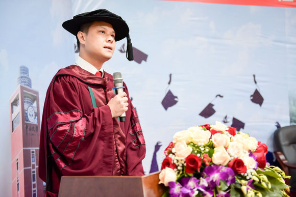 伴随着国歌和热烈的掌声,谭晓军副院长宣读孙中山先生的毕业训词,全体研究生毕业生认真聆听,齐声回应“谨遵教诲”。