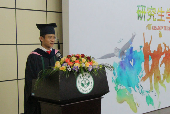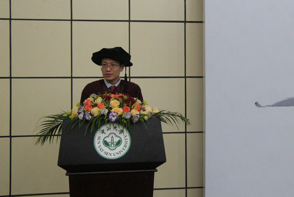 系主任助理秦际明副教授宣读了校学位评定委员会关于授予硕士、博士学位的决议。伴随着《山高水长》的音乐,毕业生们一一上台,从系主任陈建洪教授手里接过毕业纪念册。