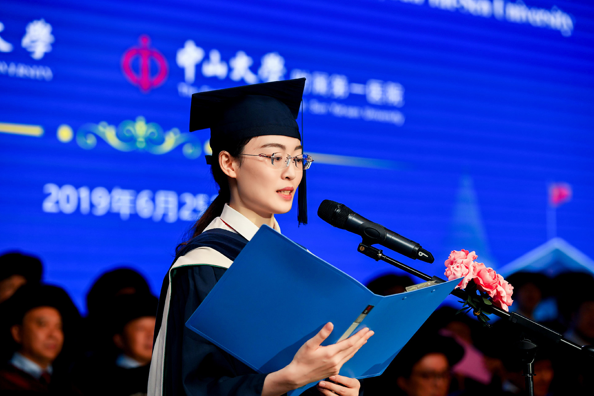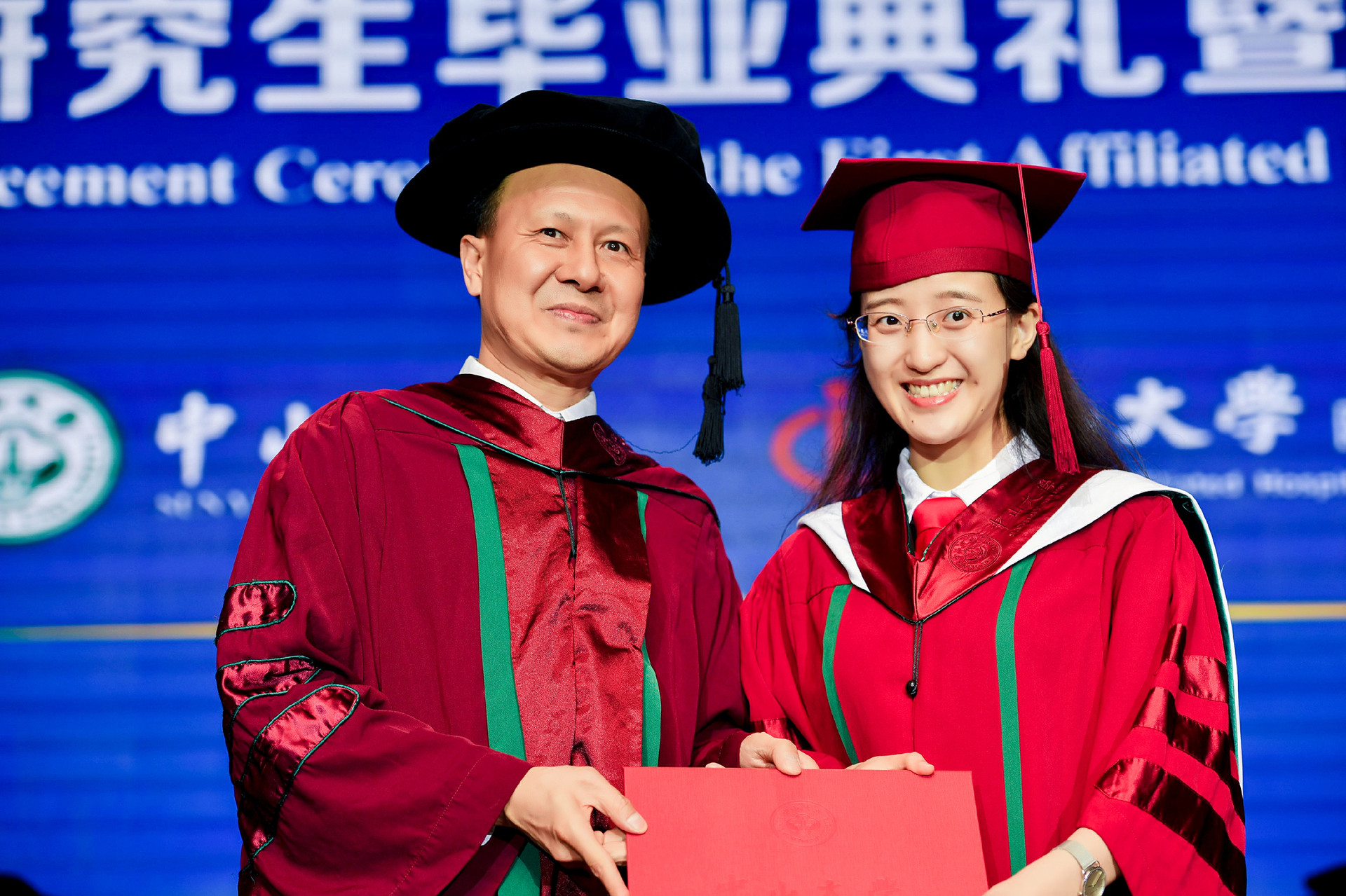匡铭副院长宣读了孙中山先生毕业训词及学位授予决定。肖海鹏院长逐一为毕业生颁授学位证书并向全体毕业生赠送毕业寄语。他表示,毕业不是终点,而是新的起点,同学们即将开启人生新的征程。“愿此去前程似锦,归来仍是少年”!他号召毕业生们不辱使命、不负重托、无愧青春,无愧于伟人中山这个名字,拼搏奋斗,为健康梦、中国梦贡献出中山医人的智慧和力量!