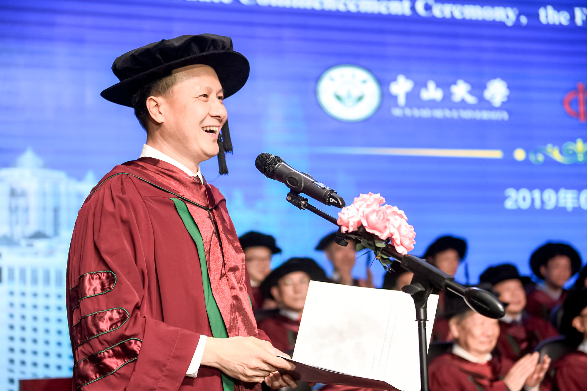 第二,担当使命。今年是新中国成立70周年,也是全面建成小康社会、实现第一个百年奋斗目标的关键之年。可以说,当前是中华民族复兴的最好时代,中国正前所未有的靠近世界舞台中心!现在新时代中国特色社会主义的航向已经明确,党的十九大也已把人民健康放在优先发展的战略地位,并作出“实施健康中国战略”的重大决策。希望你们学以致用,厚积薄发,勇敢肩负起时代赋予的重任,坚定信念,志存高远,以“不用扬鞭自奋蹄”的源源动力,努力在新时代、新征程中,擦亮“中山医”金字招牌,回馈社会,回报祖国,为实现国家医学事业新发展和健康中国梦放飞青春梦想,书写绚丽篇章!我们坚信,你们这一代青年必将大有可为,也必将大有作为!